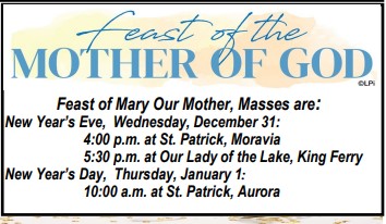 Tuesday 1/6 Mass: 9:00 am St. Patrick Church, Moravia