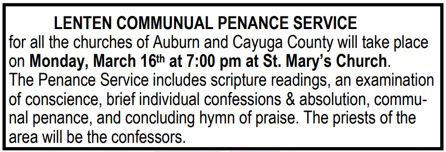 Times for individual Confessions during Lent.